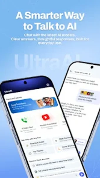 แอปยังอนุญาตให้ผู้ใช้สามารถอัปโหลดภาพเพื่อการวิเคราะห์ สร้างภาพที่สร้างสรรค์ และสรุปเอกสารหรือวิดีโอที่ยาว ด้วยการซิงค์อุปกรณ์อย่างราบรื่น ผู้ใช้สามารถรักษาประวัติการสนทนาของตนข้ามแพลตฟอร์ม Ultra AI Chat ถูกออกแบบมาเพื่อเพิ่มประสิทธิภาพการทำงานสำหรับนักเรียน มืออาชีพ และผู้สร้างสรรค์ โดยให้ประสบการณ์ AI ที่ครอบคลุมซึ่งรวมฟังก์ชันการทำงานที่หลากหลายโดยไม่ต้องใช้แอปพลิเคชันหลายตัว